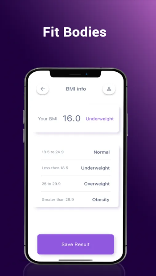A very clean and user friendly UI.User Experience has been kept simple to avoid user from getting confused.Save the calculated BMI.User information about BMI
