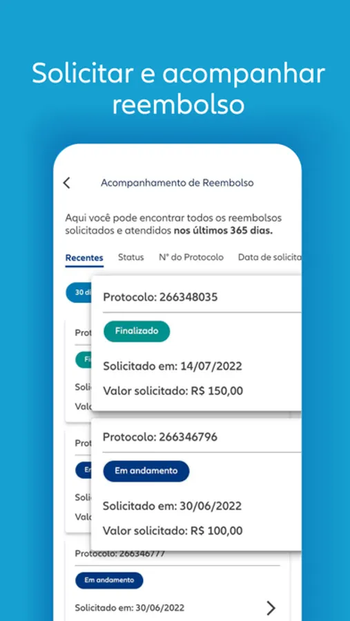 - O seu reembolso está muito mais rápido! Solicite e acompanhe o status de pagamento, receba notificações sobre o status da sua solicitação e crie uma lista com os prestadores favoritos;