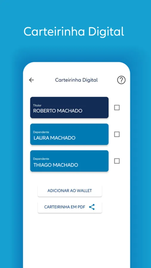 - Baixe a Carteirinha digital para você e seus dependentes;