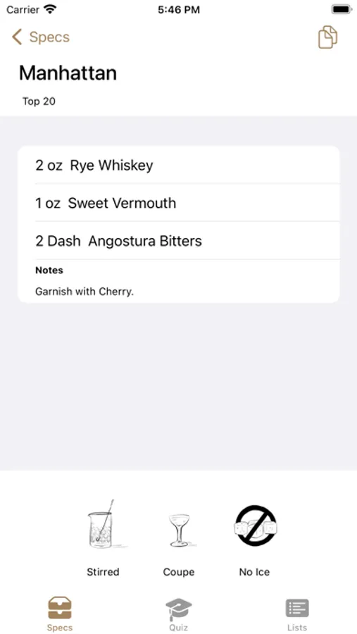 No matter who you make drinks for, this app will make you better at it. It's a library of your specs, a quick way to build flash card sets for the specs you're learning, and a store for discovering and quizzing yourself on new specs. It's just as good for reference or quickly jotting down a spec as it is for quizzing before your first shift behind the bar.