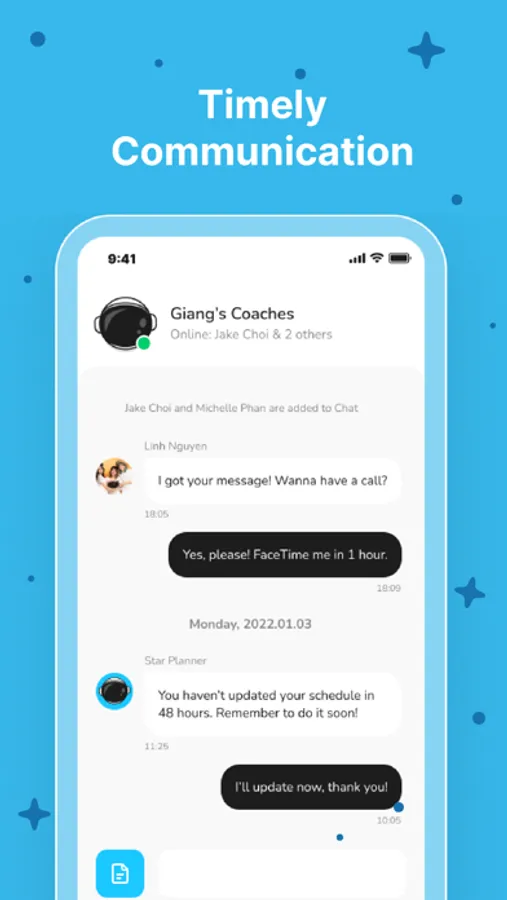 【Effective Time management】We, Star Planner, give you constant access to our timetable function, we focus on helping users take up the most suitable and effective time management, to achieve this, we provide you with the template timetable from our coaches, and you can schedule your timetable and compare it with the suggested schedule, and our coaches will help you to customize your timetable, coaches will also have regular communication with you to check the efficiency of the timetable and adjust if needed. With our timetable, you can set targets and record the completion ratio of a specific time slot. With our function, you can maximize your time, then increase productivity and become highly efficient.