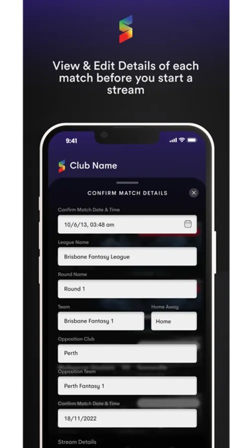 - Confirm & Edit each matches details, such as start time, round name, opposition and more