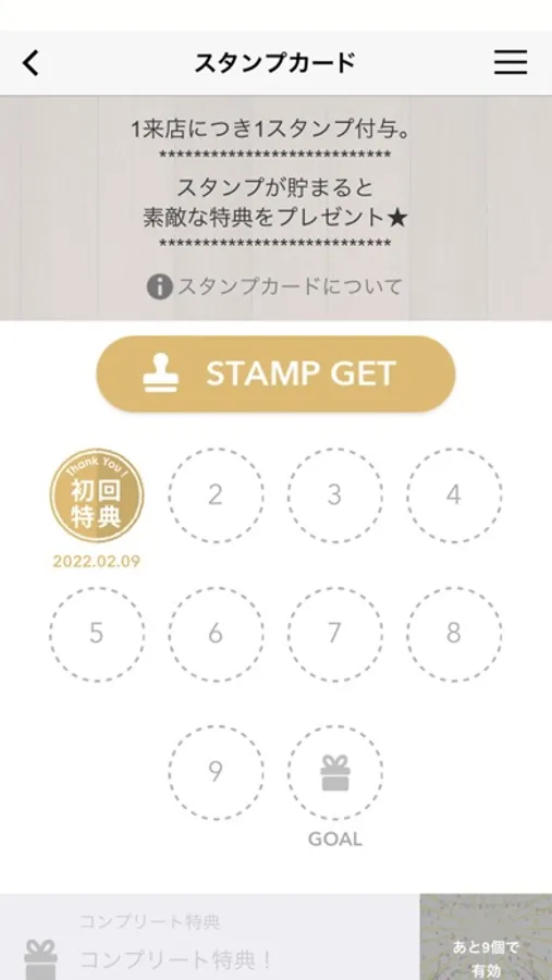 ・ご来店ごとにたまるスタンプカード。