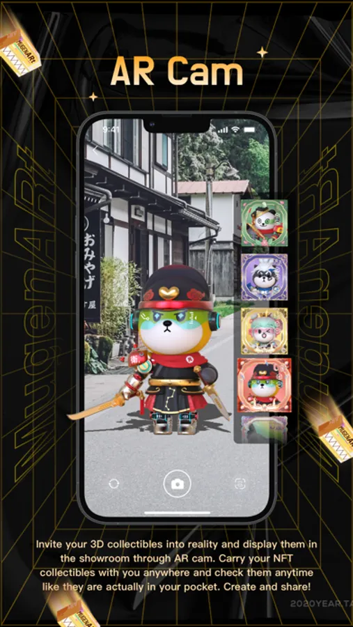 Augmented Reality is a key function of the app. With AR features, the app allows you to bring your collectibles into the real world. Move, rotate and interact with them the way you like and take pictures to show off your collectibles. Along the way, more interactions will be built upon AR technology and provide users with more abundant possibilities between the virtual elements and real worlds.