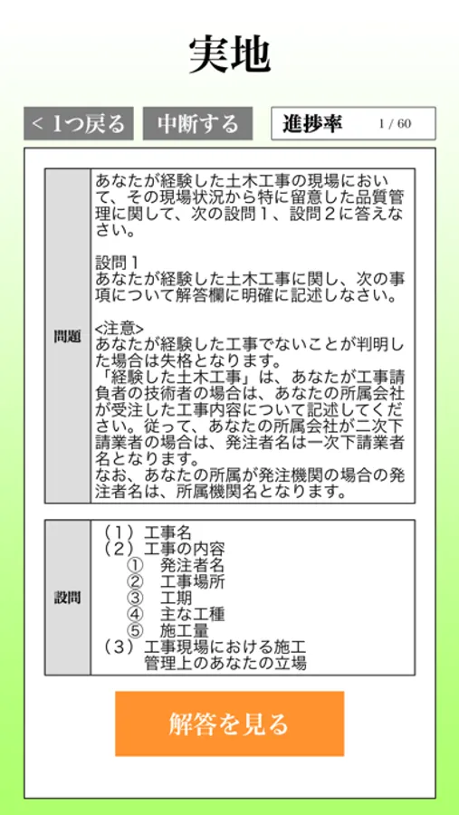 ■本アプリは1級土木施工管理技士試験の合格を確約するものではありませんのでご了承ください。