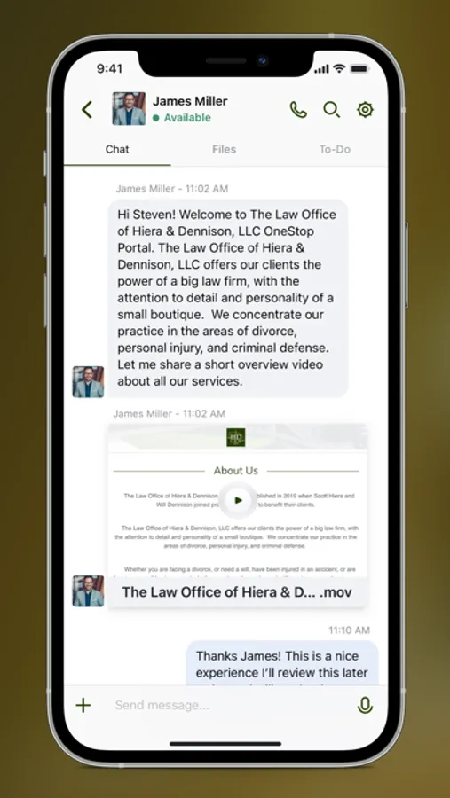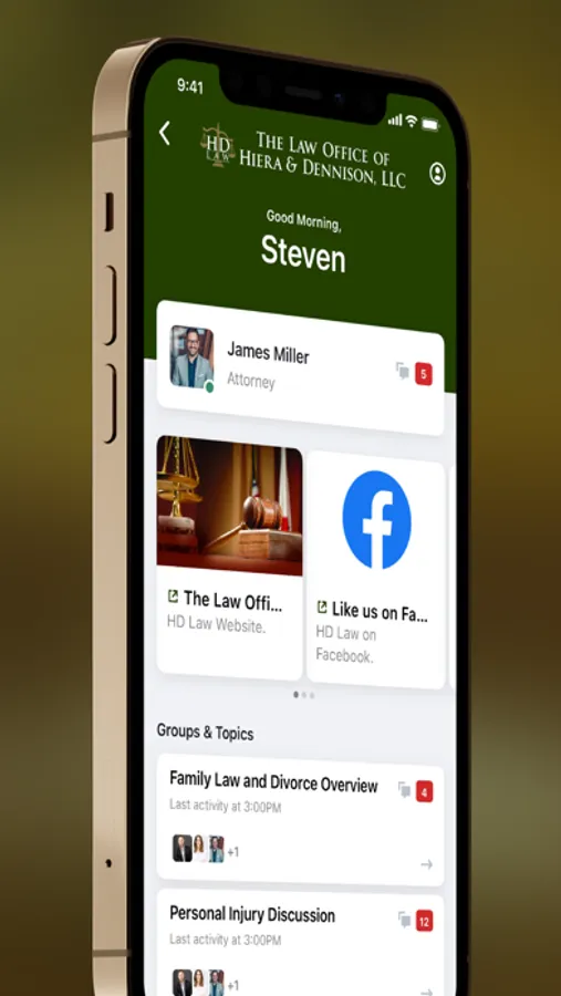 The HD Law app facilitates communication and improves efficiency between the law firm and clients, and makes it easier to reach attorneys and staff, review and e-sign documents, check on upcoming court dates, and more.