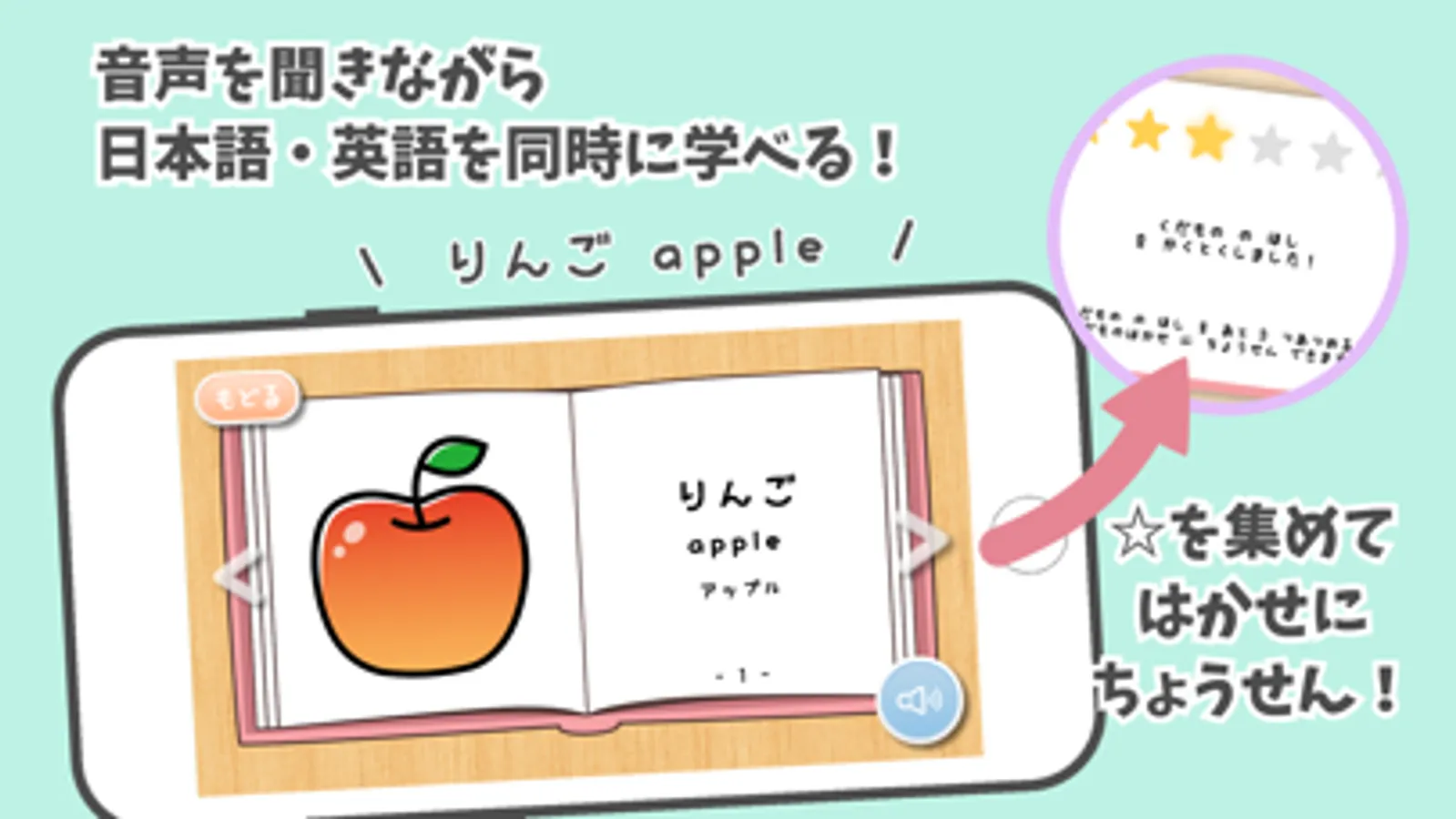 日本語・英語での音声も再生される為、日本語と英語を同時に学ぶ事が出来ます。