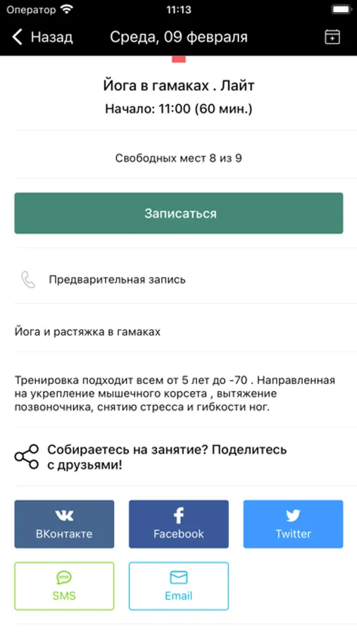 С помощью приложения вы можете быстро записываться на занятия, смотреть расписание, оперативно получать информацию об изменениях в расписании и специальных предложениях, а так же видеть личный баланс и историю посещений.