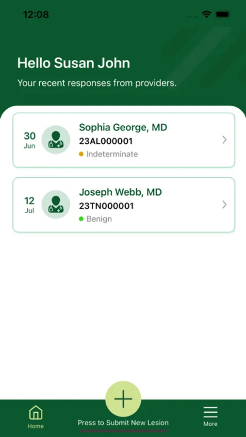 CheckMySpot allows users to submit a photo of a single skin lesion and have a board-certified dermatologist review the spot within 24-48 hours. Once screened, the dermatologist will select 1 of 3 dispositions: 1) Green: benign (no clinic visit needed at this time but user should monitor for future changes, 2) Yellow: indeterminate (non-urgent clinic visit needed), and 3) Red: worrisome (demonstrates characteristics of skin cancer, urgent clinic visit needed). If a user receives a yellow or red disposition, CheckMySpot will expedite a referral either their existing dermatologist or a qualified dermatologist in their area.