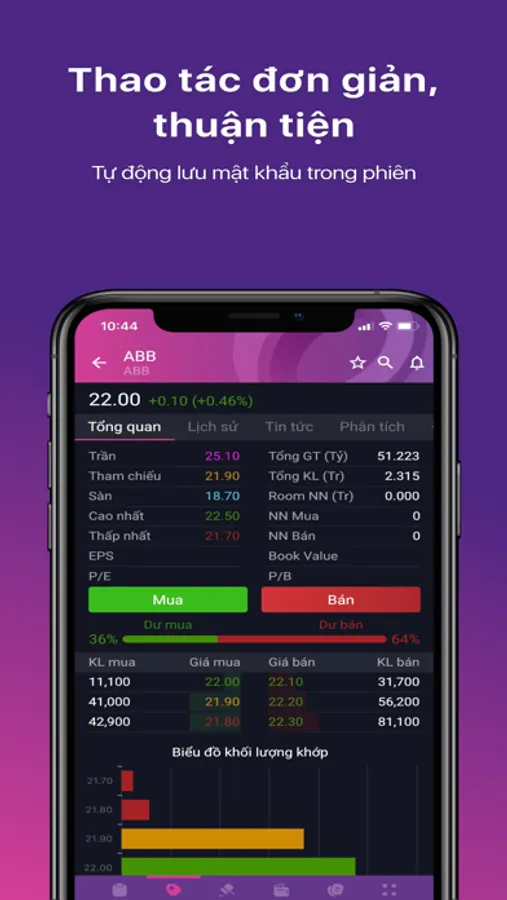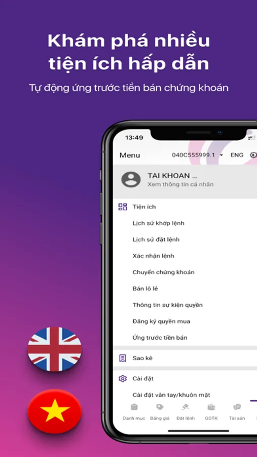 • Đăng nhập thông minh (mật khẩu/vân tay/faceID).