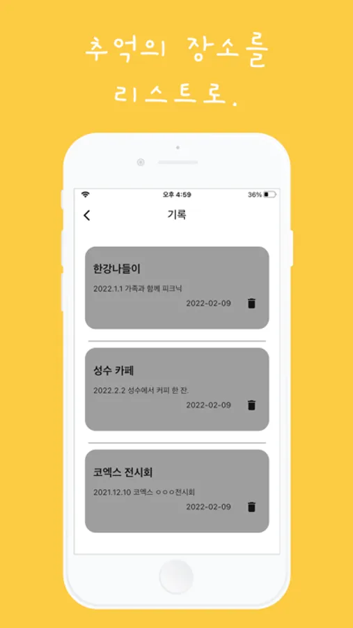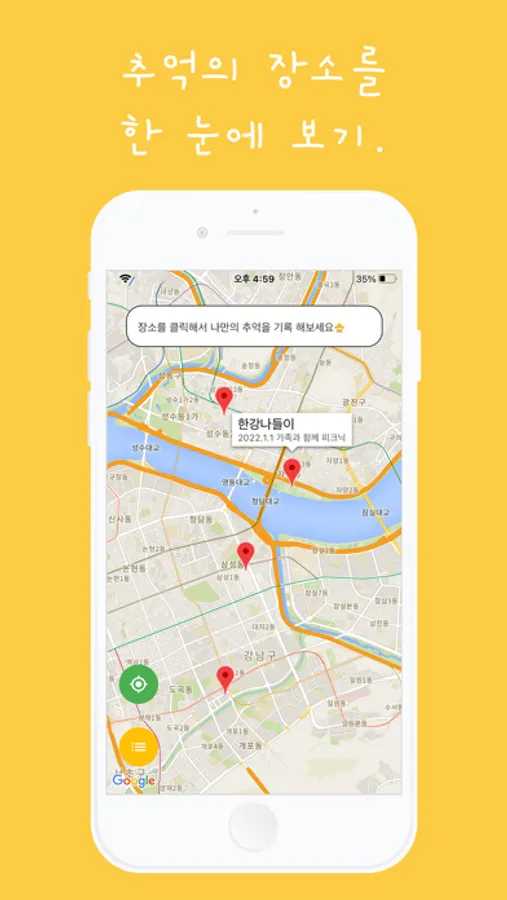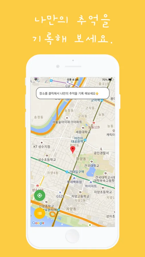 지도에서 장소를 클릭해 나만의 추억을 기록해 보세요