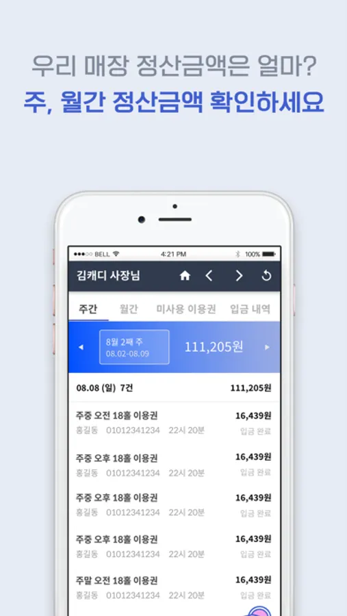 김캐디 스크린골프 사장님을 위한 매장 관리 앱이 출시 되었습니다.