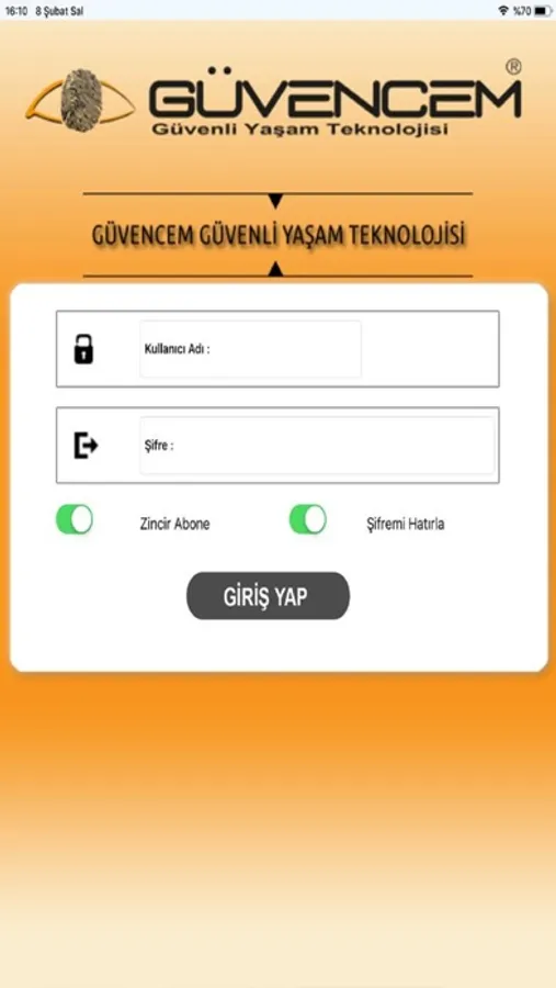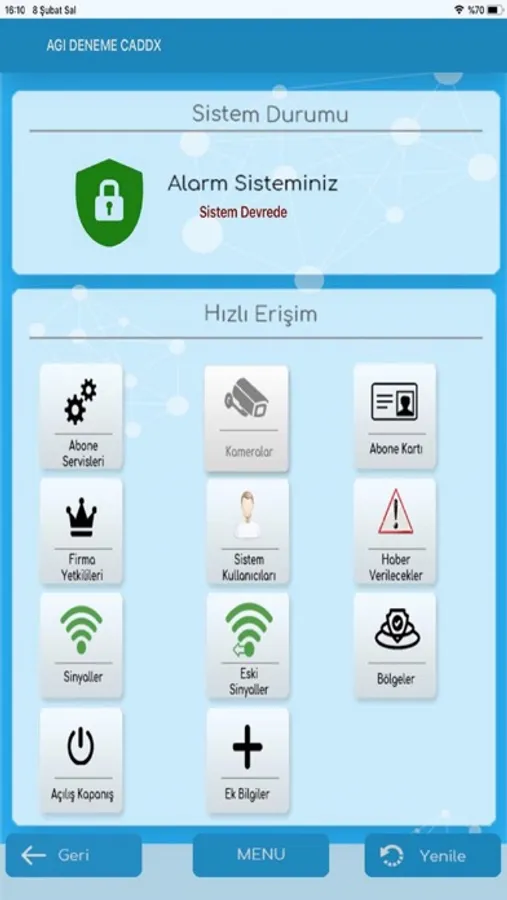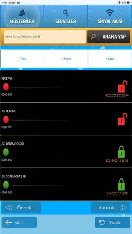 Güvencem Müşterilerinin, Alarm panelleri üzerinden Alarm Merkezine gönderdikleri sinyalleri takip edecekleri uygulama. Bu uygulama ile alarm sisteminin kurulu olup olmadığını ve merkeze gönderilen son 30 sinyali görülebilir.