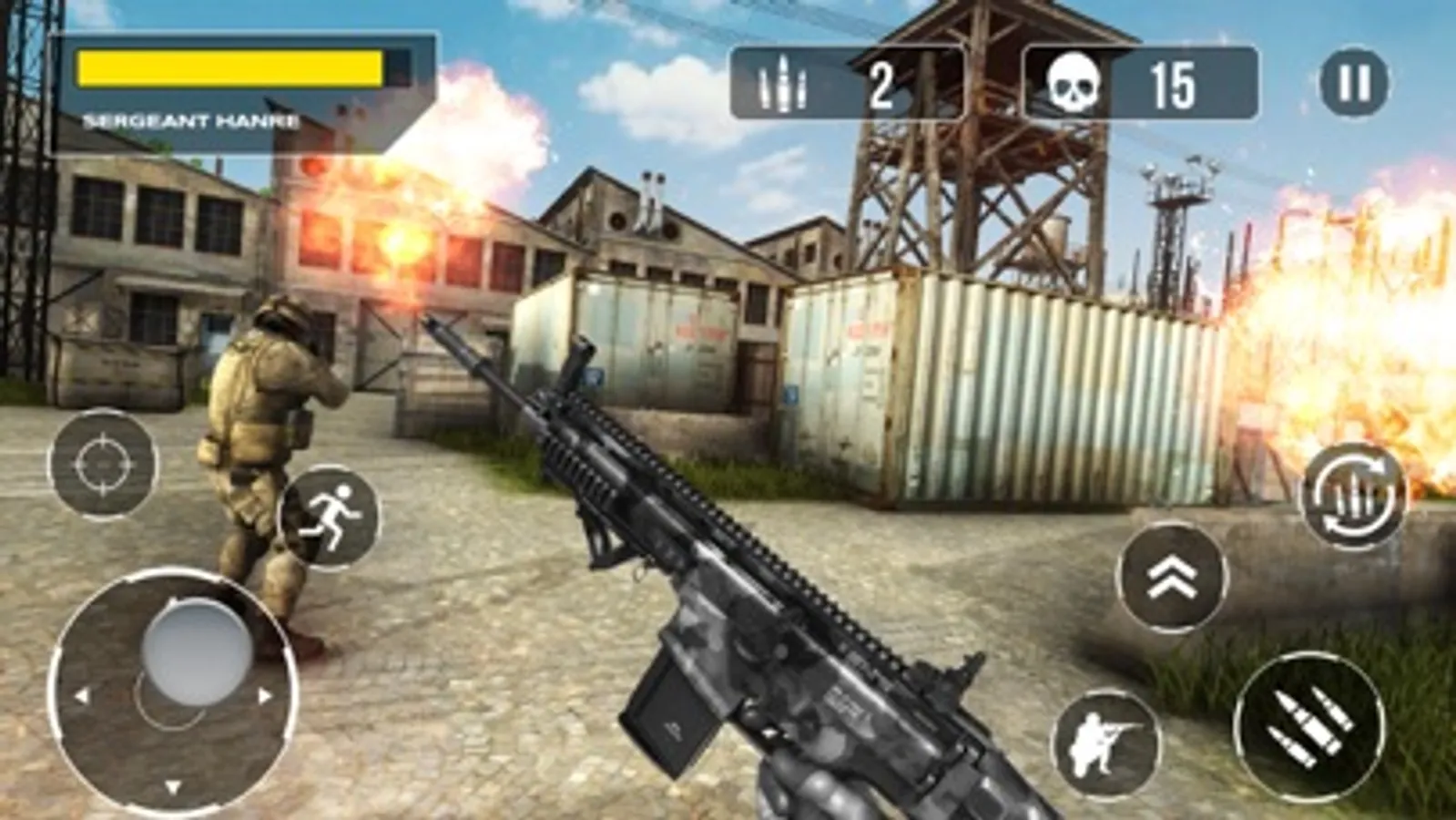 Welcome to FPS Shooting Commando Warfare with modern battle missions. Pick your gun and start your military career in this shooting survival game. Stay focused on the field or you will regret it. Aim at the right time to hit accurately to win this survival shooting game. Accomplish all missions to win rewards for your weapon upgrades. Enjoy playing this warfare game & evolve as an army commander.