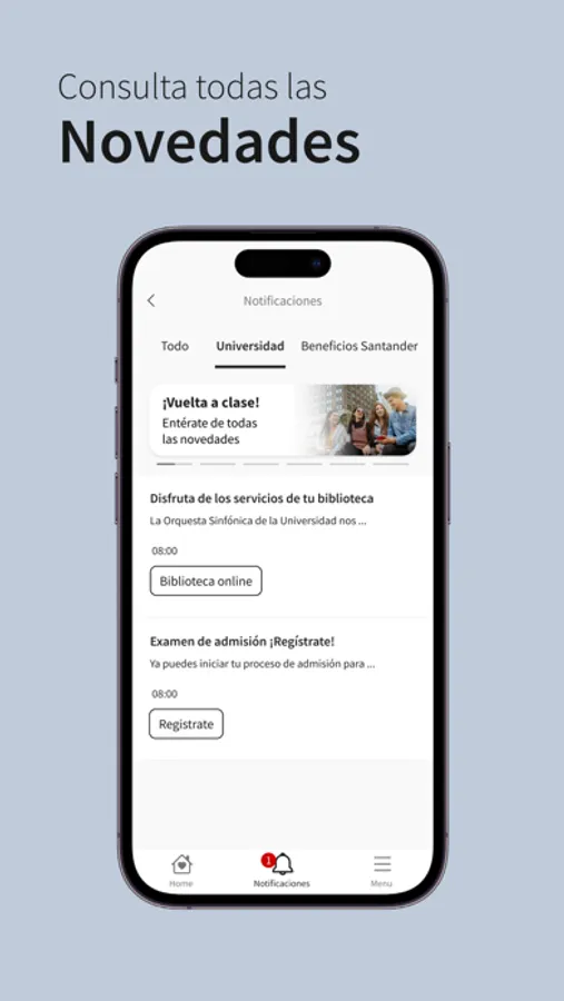 2. Conocer al momento las noticias, eventos y anuncios más relevantes de tu universidad.