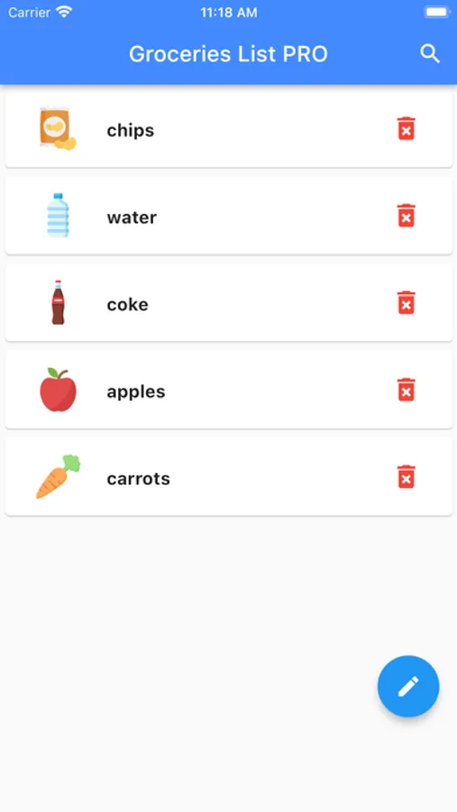 Just add the products you need to buy pressing the plus button on the bottom right corner of the main app, fill it with the name of the item and save it with the add this item to cart button.