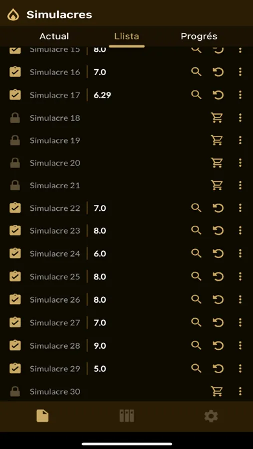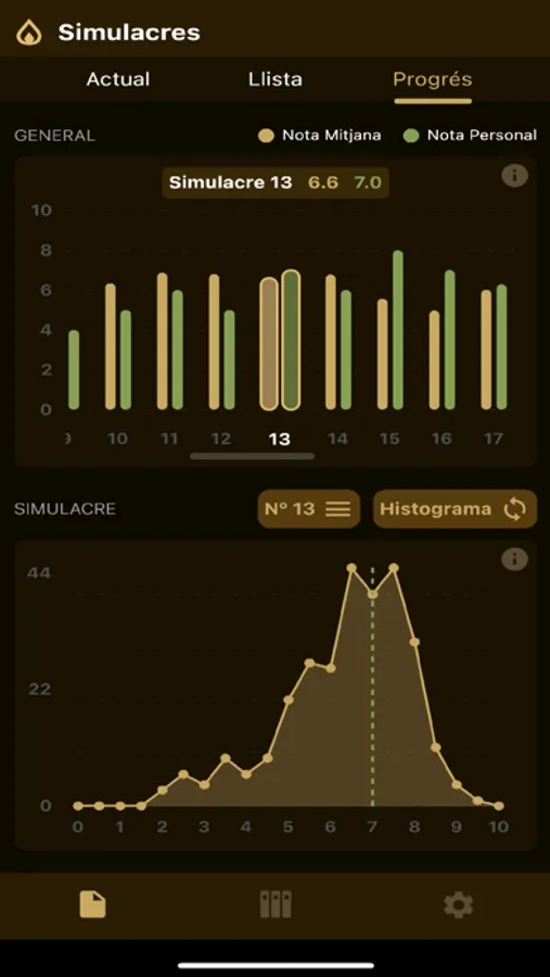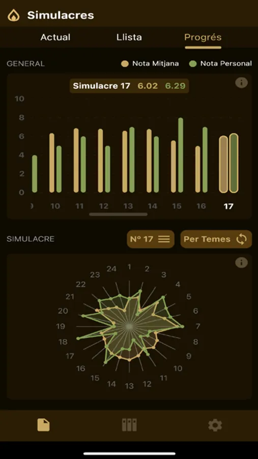 - Disposaràs d’un seguiment del teu progrés en simulacres a partir d’un gràfic.