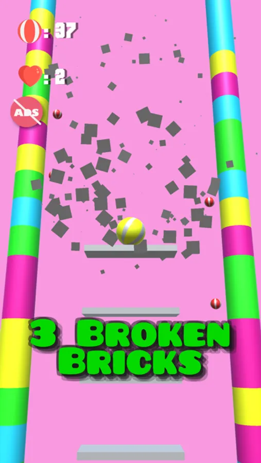 The more balls you collect, the bigger you get, and the more you grow, the more bricks you break at the end of the level! Sometimes you must slide back down the rollers to collect the balls you missed. If you can slide down for a long time, the balls you collect will double your growth.