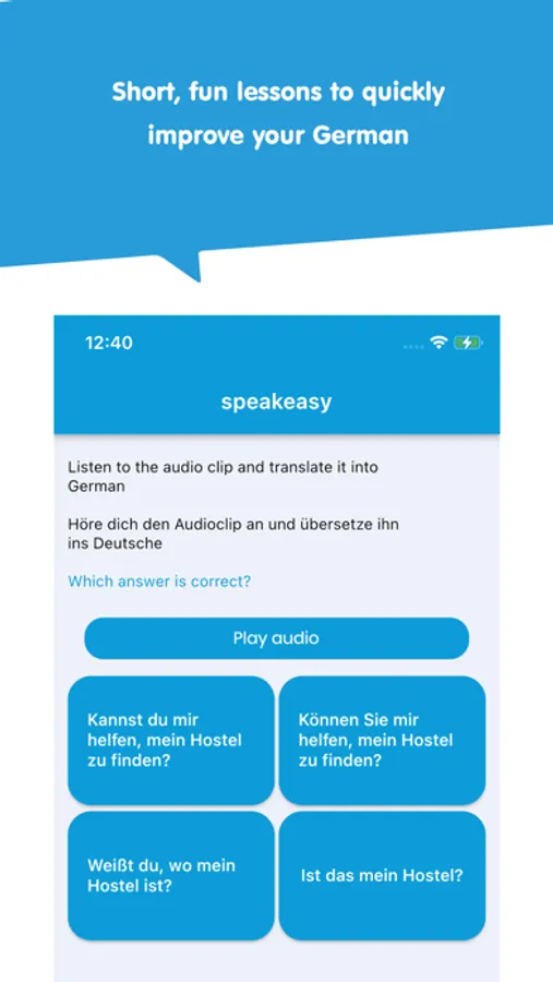 With a wide variety of lessons focusing on speaking, reading, writing, and listening, you'll be sure to improve your German!