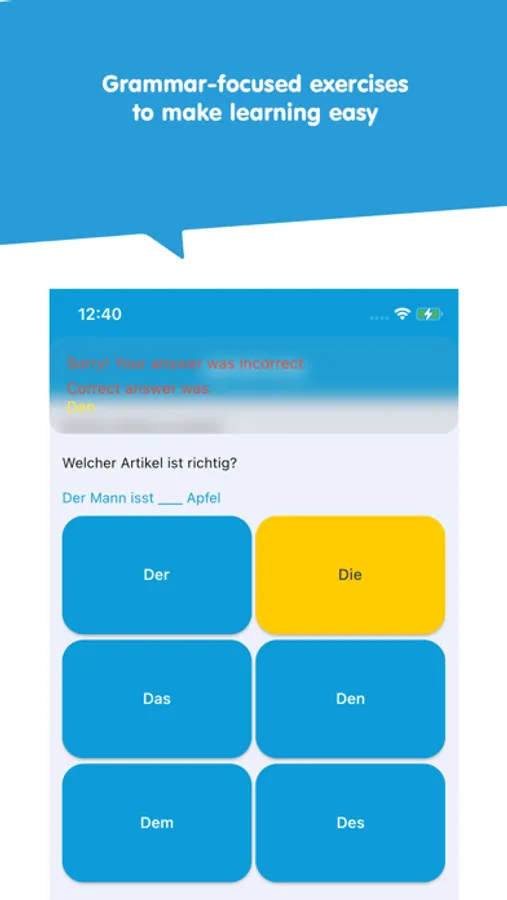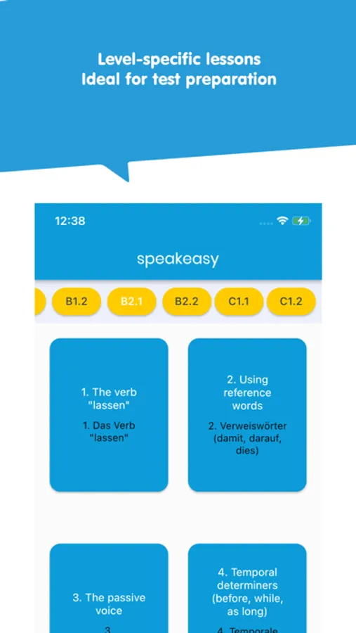 With grammar-focused lessons broken down by level, you'll easily be able to improve your language skills and prepare for tests, all while having fun!