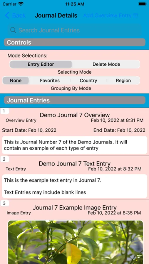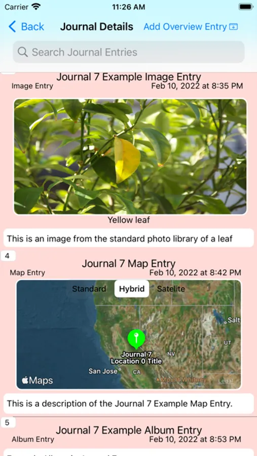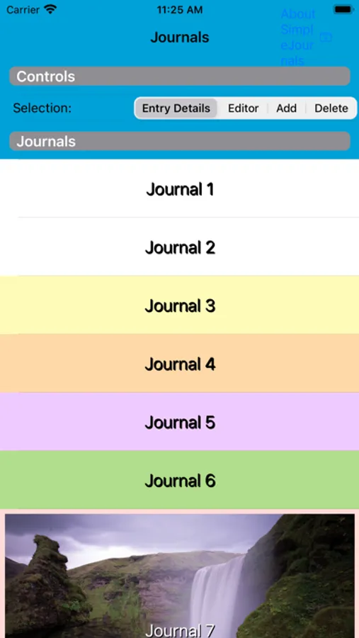 This App provides a simple framework for writing collections of Journals any any kind. It allows textual entries, image entries, map entries, photo album entries, overview entries and future event planning entries to added to a journal, in any combination and in any quantity.