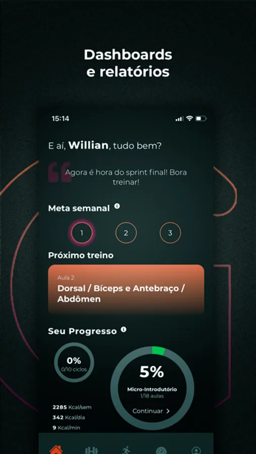 Conte com um aplicativo que se adapta a você e te fornece treinos periodizados que te permitem evoluir no cuidado com a saúde:
