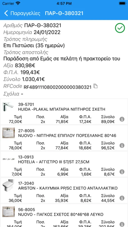 Εφαρμογή καταχώρησης παραγγελιών και παρακολούθησης εξελιξης αυτών. Διαθεσιμότητα ειδών, online κατάλογος, ticketing support , επανεκτυπωση τιμολογίων.