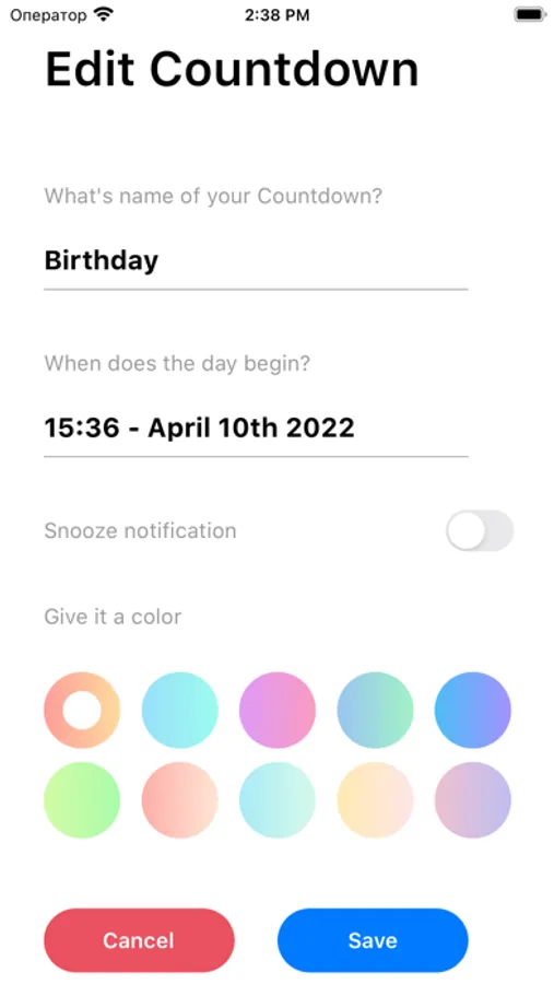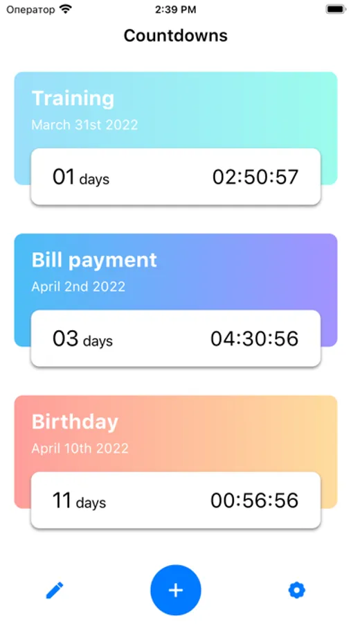 Use the CountDown – Events Timer for any important events: birthday, training, holidays, weekends and more!