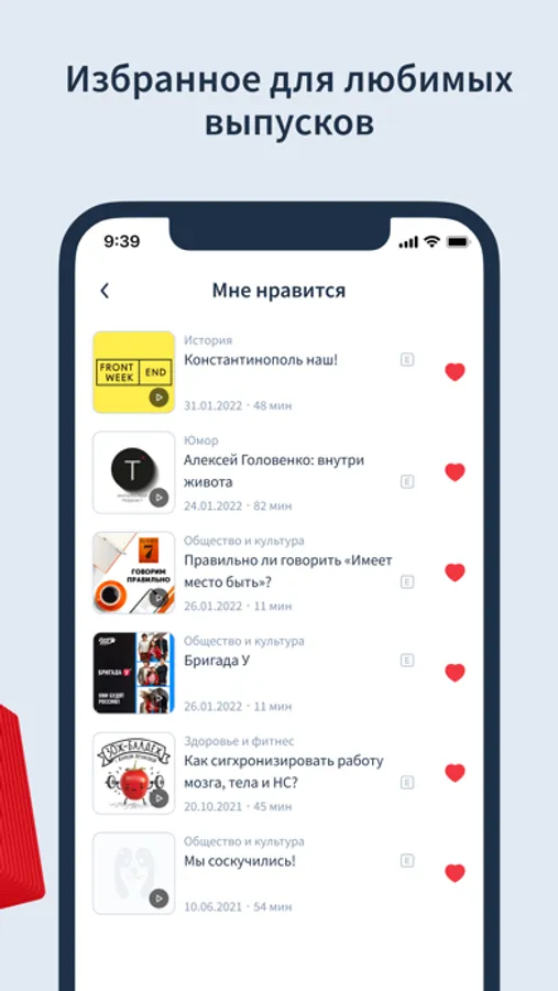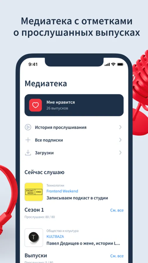 Слушайте подкасты онлайн, или скачивайте для прослушивания в удобное для вас время, без подключения к интернету. Отмечайте прослушанные эпизоды подкастов, чтобы не запутаться. Выберите удобную скорость для прослушивания и поставьте таймер сна, чтобы засыпать под любимый подкаст.