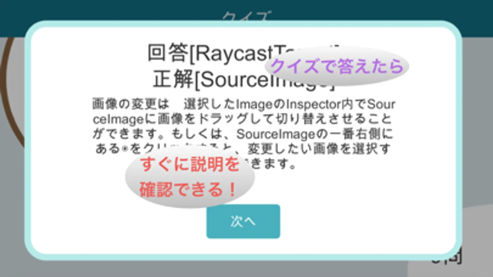 学習や辞書で学んだ部分をクイズとして出題がされる!