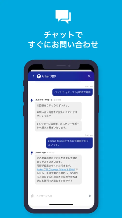 Ankerグループ製品を熟知しているカスタマーサポートのメンバーがお客様のご希望をリアルタイムで伺いながら、会話形式で製品選びやお悩みの解決をフルサポートし、より気軽かつ快適な購買体験を提供します (※) 。