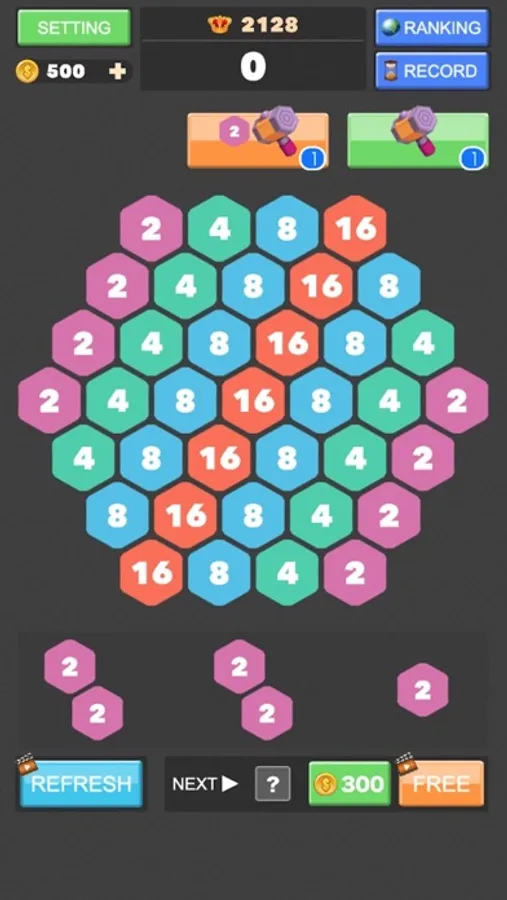 Drag the number tile to the map to merge the bigger number,try to get high score as you can!
