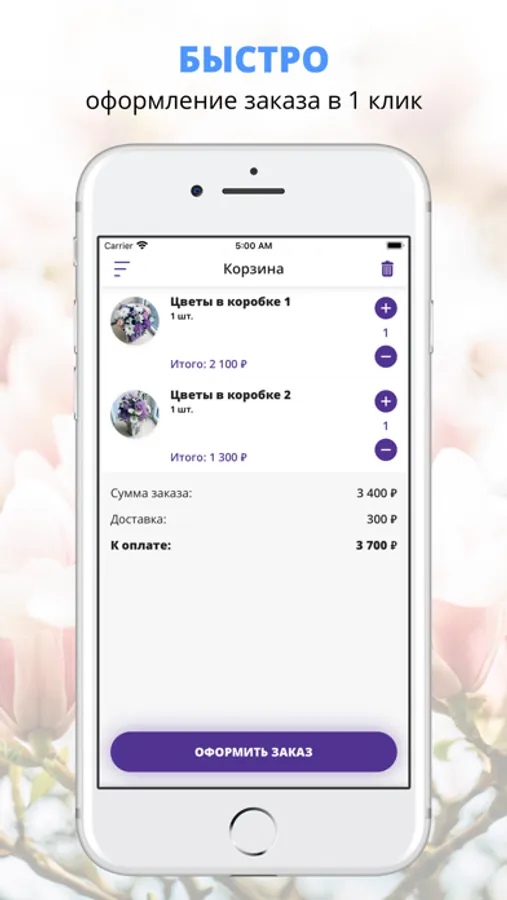 Скачивайте наше приложение, оформляйте заказ и дарите цветы любимым!