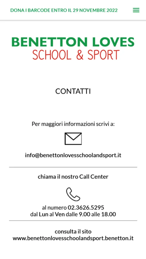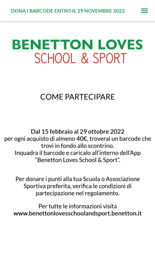 - caricare i bollini digitali alla Scuola o all’Associazione sportiva, ottenuti facendo una spesa presso uno dei negozi United Colors of Benetton e Undercolors of Benetton