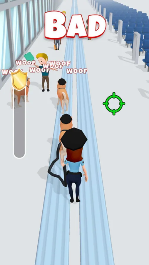 Patrol the corridors of the airport with your canine squad looking out for suspicious behaviour .