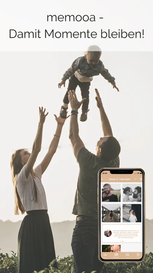 Lass memooa Deine Familie begleiten und Deine kostbarsten Erinnerungen bewahren. Lade jetzt die App herunter und starte die Reise der Erinnerungen!