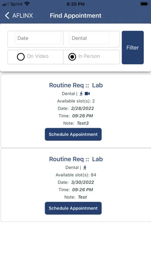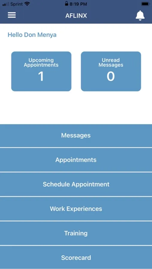 The AFLINX App is used to schedule medical and dental appointments. Additional features include responding to alert, poll and feedback messages. Career optimization tools are also provided with a module to list work experiences and upload training certificates.