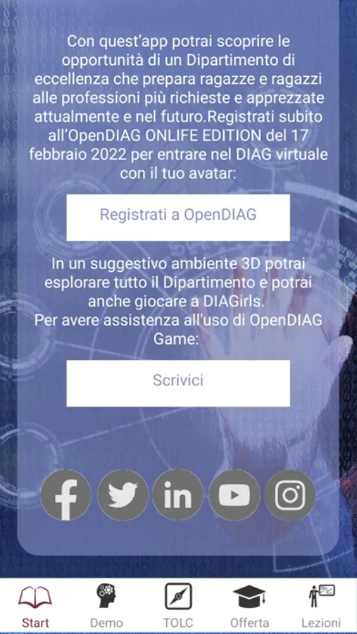 Companion app per l'evento OpenDIAG 2022 del Dipartimento di Ingegneria Informatica Automatica e Gestionale Antonio Ruberti di Sapienza Università di Roma. Usa l'app per scoprire quali laboratori saranno aperti, l'offerta formativa, le modalità di iscrizione e altro ancora!