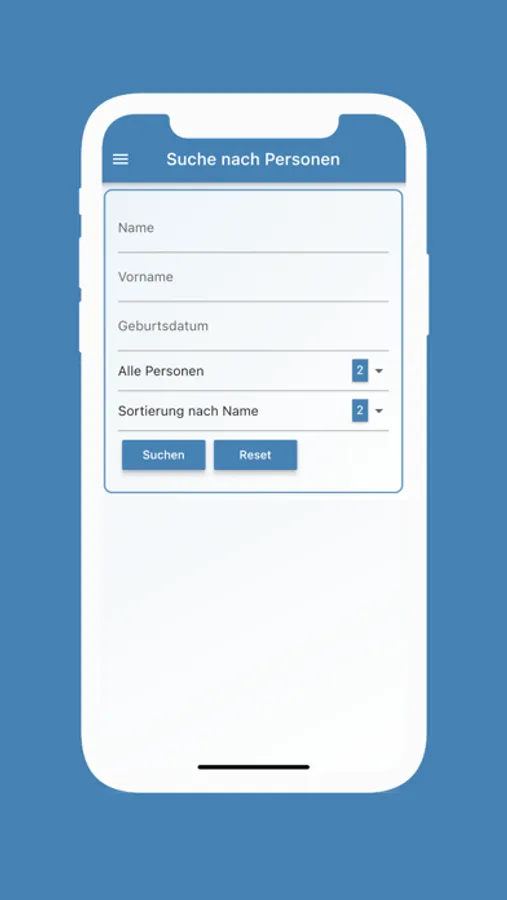Die vorgegebenen Suchfelder ermöglichen ein rasches Auffinden der zu suchenden Person. Das Suchergebnis liefert einen Überblick über die wichtigsten Informationen zur gefundenen Person.