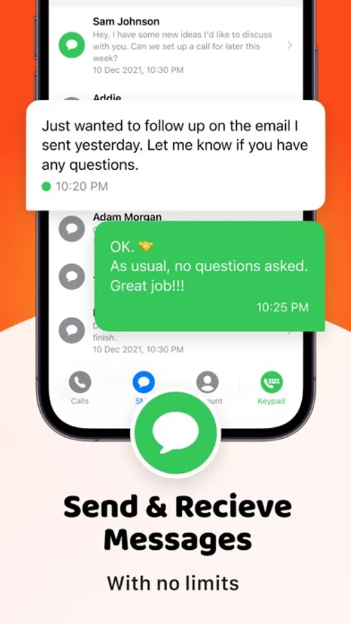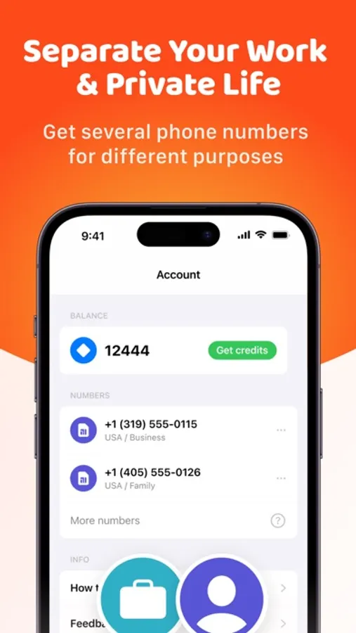 Now you can separate work and personal life. Choose a different phone number for calls and text messages without using the original phone number. Great for businesses, entrepreneurs, and anyone looking to improve their privacy: when you call or send messages through the app, people see your new phone number, so your personal number remains private.