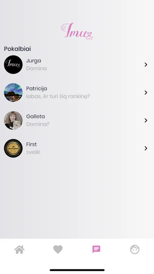 Visada esame atviri Jūsų pasiūlymams ir idėjoms. Laukiame jų! Rašykite mūsų komandai į el. paštą: info@imusau.lt , drąsiai dėstydami mintis, siūlydami savo idėjas ir naujoves. MES KARTU šią svetainę paversime patraukliausia virtualių susitikimų vieta VISIEMS MUMS!