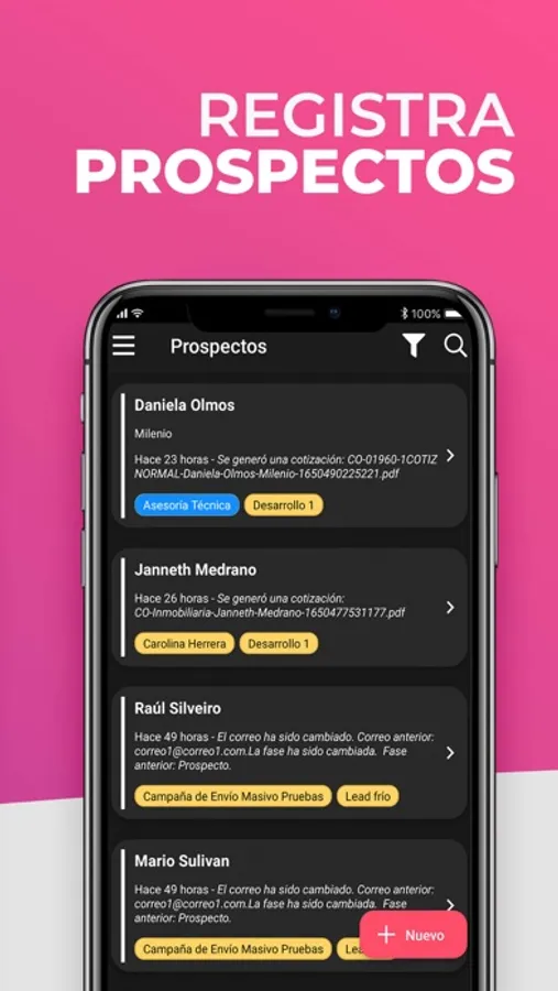 Upnify® CRM is the mobile tool for the control, organization and follow-up of your sales, from prospecting to post-sales. It is an intuitive system that allows you to have all your customer information in order, which facilitates the management of your commercial portfolio from wherever you are.
