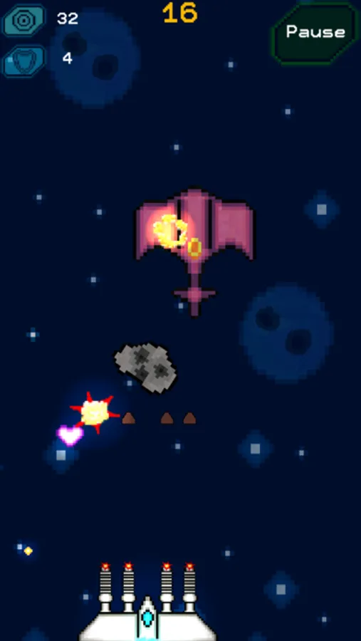 Xeno is a Shoot 'em up game in which you build your own ship, assemble the weapons and fight increasing number of enemies and face powerful bosses in an endless mode. Collect blueprints to unlock new ship modules, wings and guns. Shred your enemies for materials to craft unlocked elements. Finally, upgrade your arsenal with crystals and gold found in asteroids.