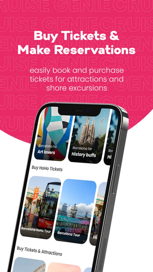 Streamline your travel planning with Cruise Genie's integrated booking platform. Purchase museum tickets, transportation passes, tours, and attractions effortlessly through the app. Say hello to stress-free planning and more time for incredible experiences.