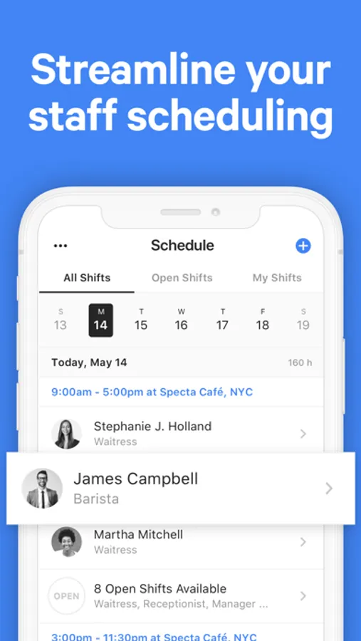 Get instant notifications whenever the schedule is published, your shift is updated, a shift is about to start, or a coworker asks to trade your shift.