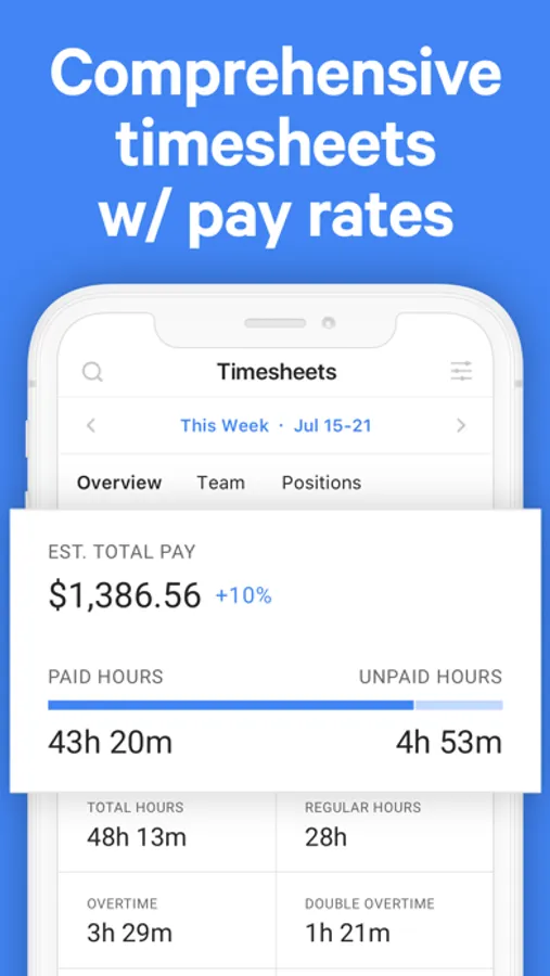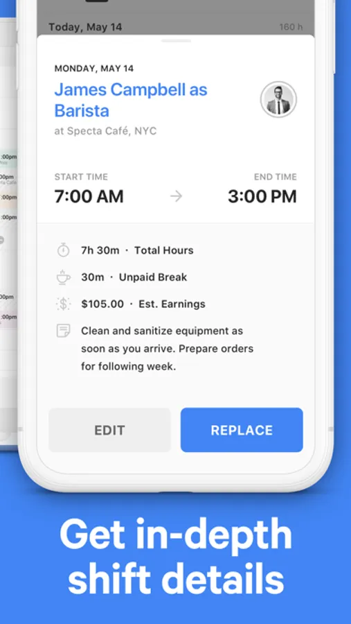 Shift start & end times, earnings, job position, location, breaks, notes and so much more to set your team up for work.