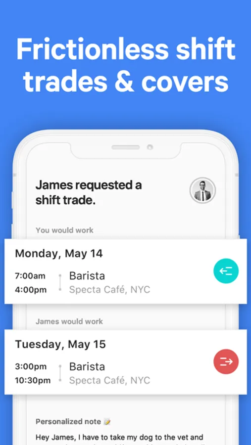 Don’t manage every swap yourself. Allow staff to trade shifts or find cover without making a single call.