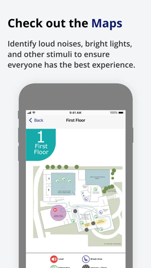 In the app, you can learn about the exhibits and important historical topics, create your own schedule for your visit, play a matching game, and check out other features like the sensory friendly map and insider tips.