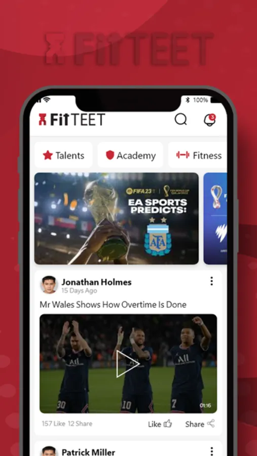 تطبيق لعرض مقاطع الفيديو المسجلة للرياضيين الموهوبين والمحترفين من مختلف الرياضات ومختلف مناطق العالم، كما تقدم المنصة اتاحة الوصول إلى بيانات اللاعبين المسجلين من خلال تقديم طلب بيانات اللاعب. خدمة التصوير الاحترافي من خلال المصورين الاحترافيين المسجلين في التطبيق، بالإضافة الى صفحة أخبار رياضية ، متجر إلكتروني يوفر منتجات رياضية بالتعاقد مع أفضل المتاجر الرياضية على مستوى المملكة.