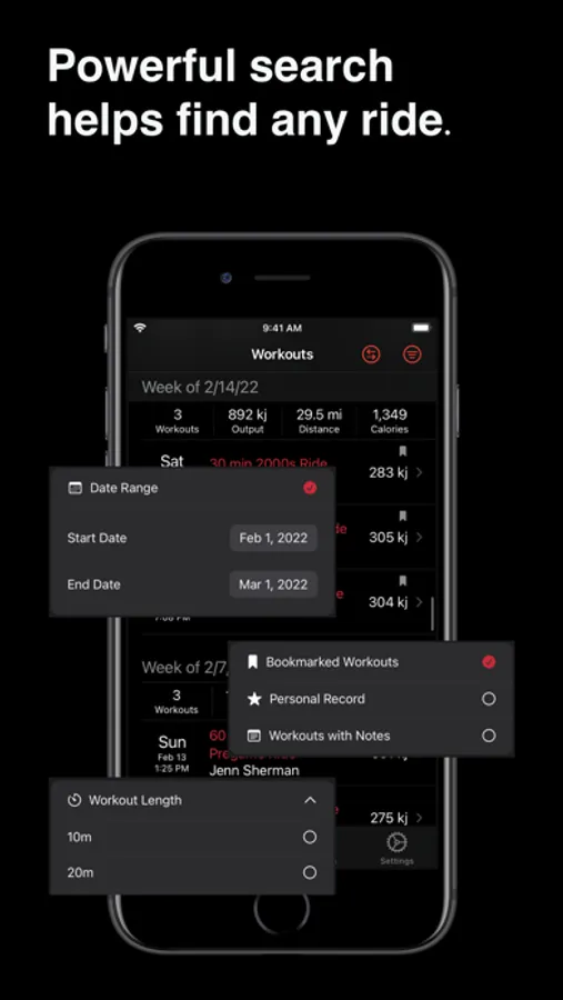- Workout log with powerful search and filters